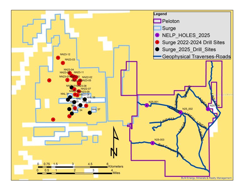 In 2023, Surge Battery Metals Inc. (Surge) made a major lithium in clay discovery on claims that are immediately adjacent to and tied onto the western portion of the NELP claim block. Surge has conducted four drill campaigns and has issued a Preliminary Economic Assessment. Surge has reported an indicated lithium resource of 11.24 million tonnes of Lithium Carbonate Equivalent (LCE) grading an average of 3,010 ppm Lithium. Surge has stated that this is the highest-grade lithium in clay resource in North America (ref: Surge Press Releases dated September 24, 2024 and July 24, 2025).